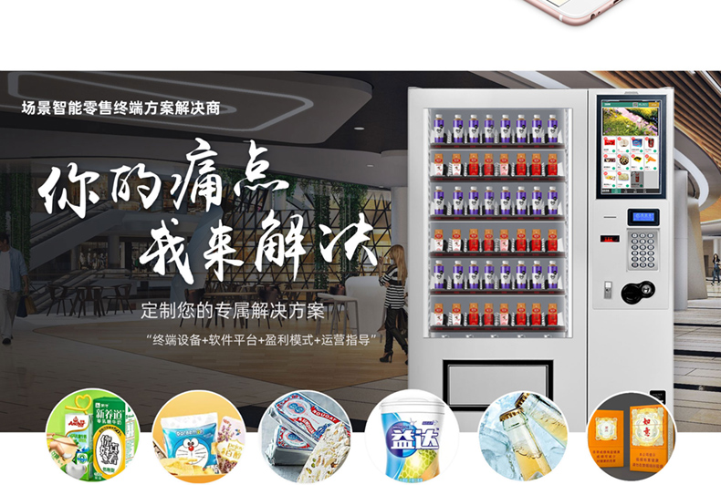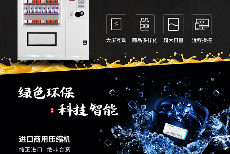 訂購標配:制冷機組+22寸液晶觸摸屏+TEI45工控主板+ITL紙幣接收器+紙幣找零器+微信、支付寶支付模塊