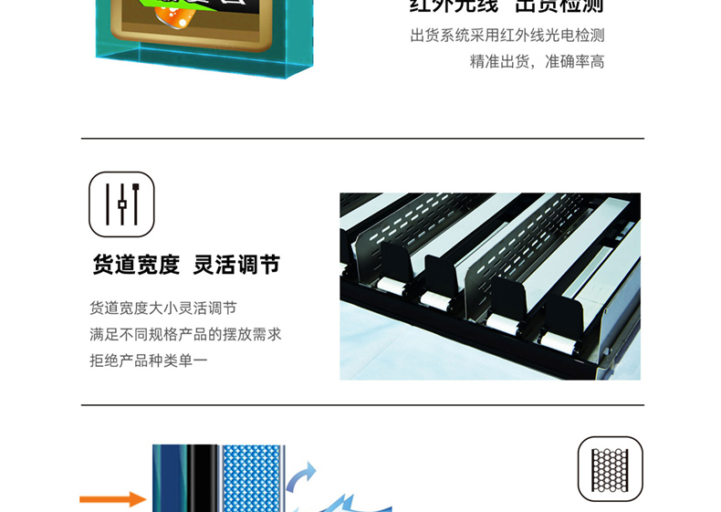 容量規格:6層,每層9條貨道,履帶式貨道,升降梯出貨