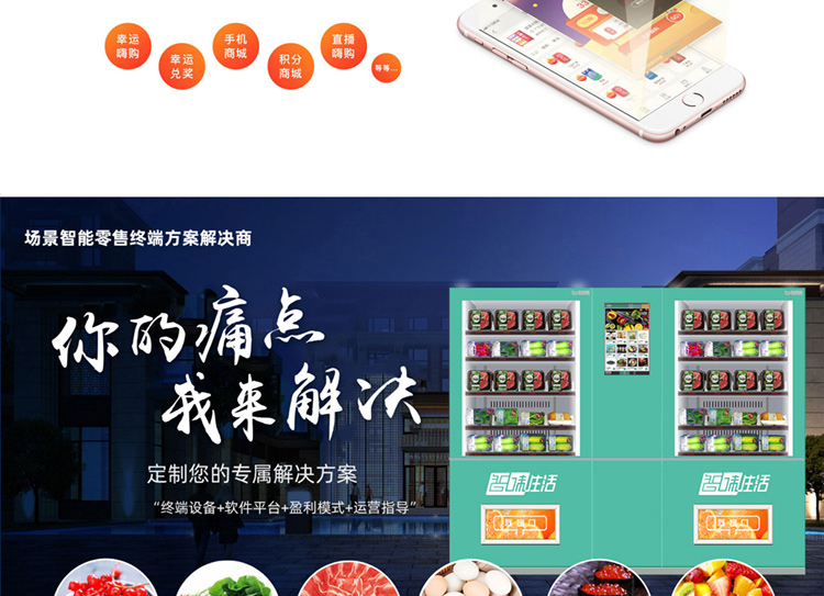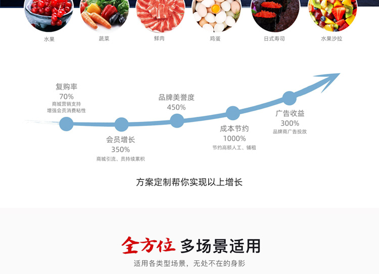 售賣類型:可售果蔬 盒飯 糧油 肉類 海鮮等生鮮冷鏈商品